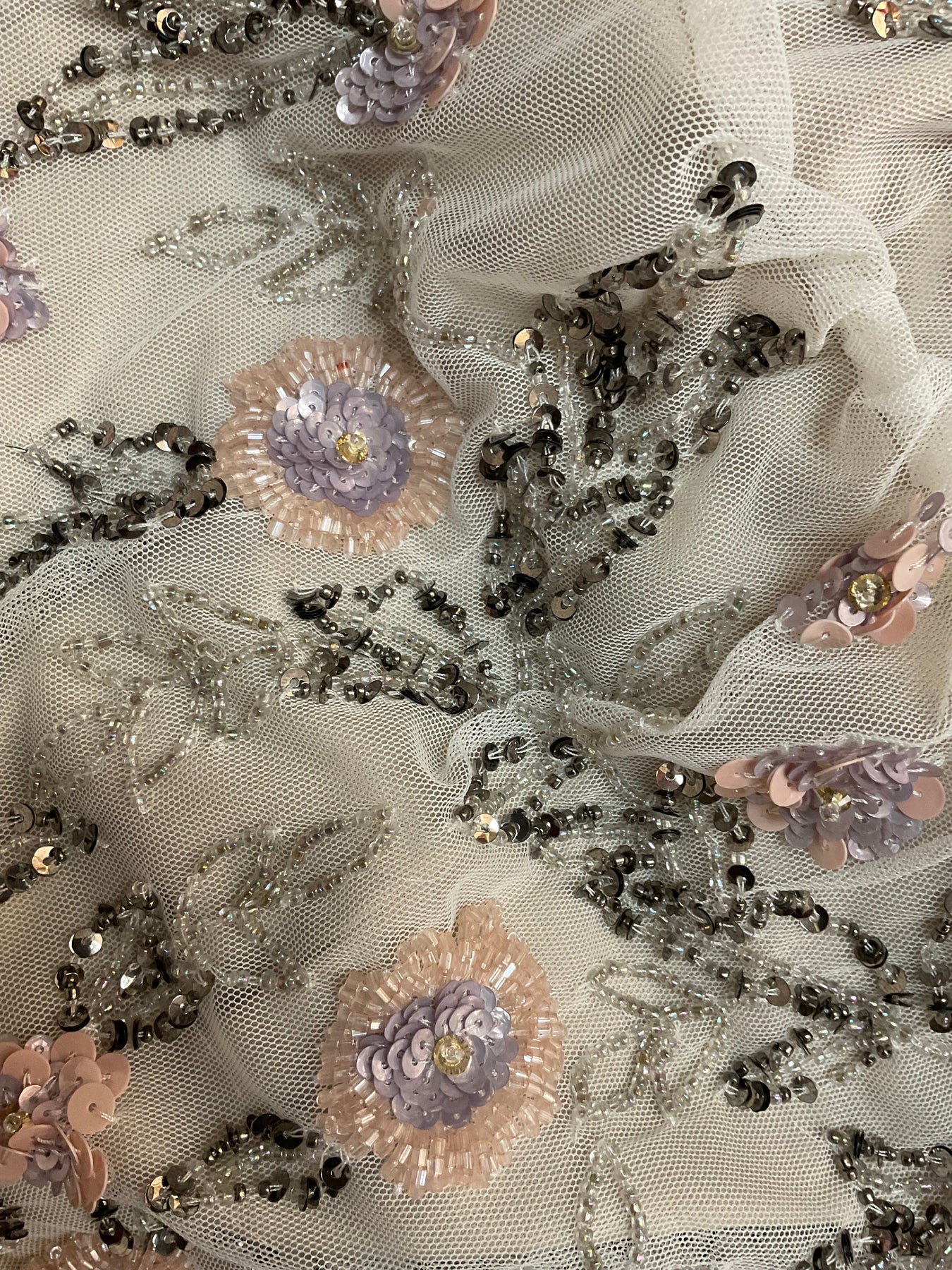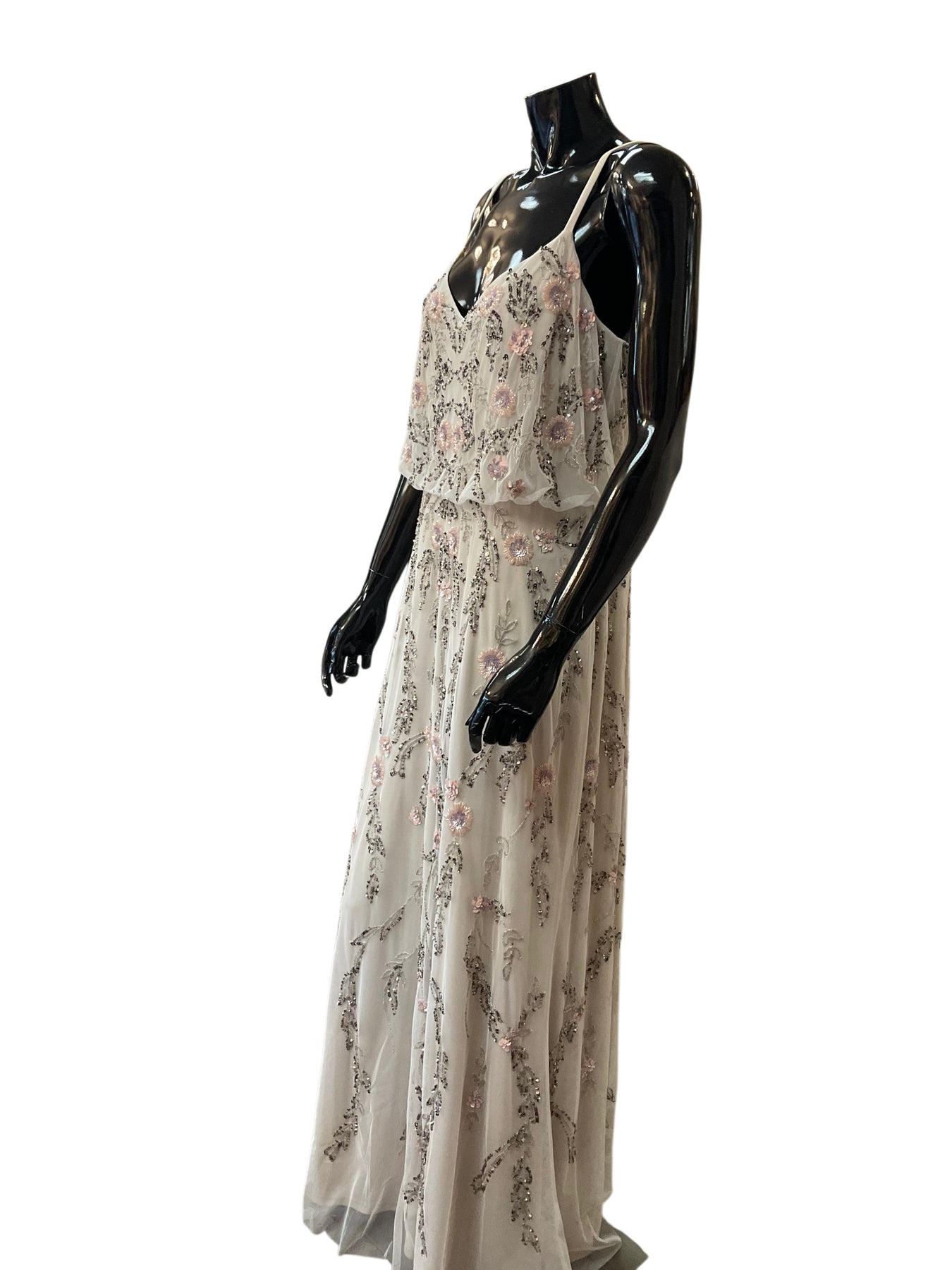 beige mesh with beaded flowers gorgeous gown